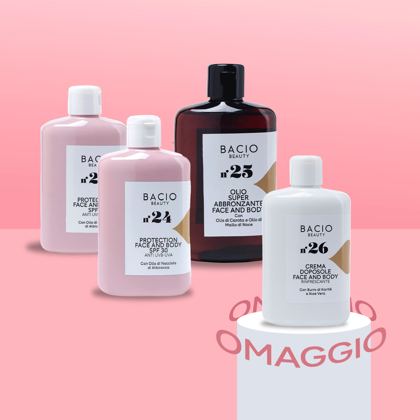 Siamo orgogliosi di offrire prodotti che non solo aiutano la vostra pelle a raggiungere il massimo splendore, ma lo fanno in modo naturale e delicato. Siamo sicuri che una volta che proverete la beauty routine targata Bacio Beauty™, non tornerete indietro.